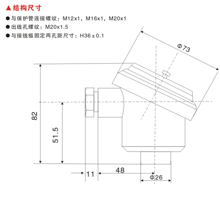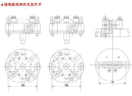 與接線板固定兩孔距尺寸: H =36±0.1