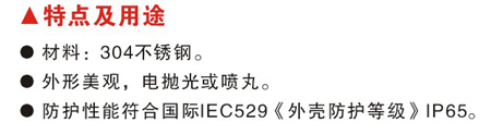 ●防護性能符合國 際IEG529《外殼防護等級》IP65。