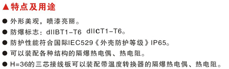 ●可以裝配各種結(jié)構(gòu)的隔爆熱電偶、熱電阻。
