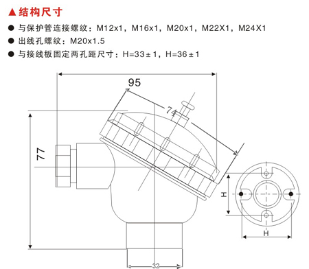 ● H =33±0.1的可以裝配國外接線版或溫度轉(zhuǎn)換器與國際接軌。
