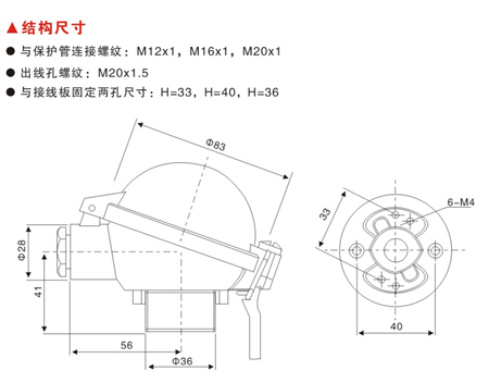 與接線板固定兩孔距尺寸: H =33,H=40,H=36
