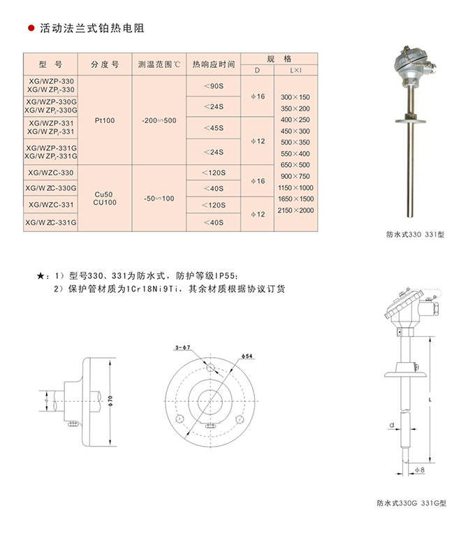 1)型號330、331為防水式,防護等級IP55;