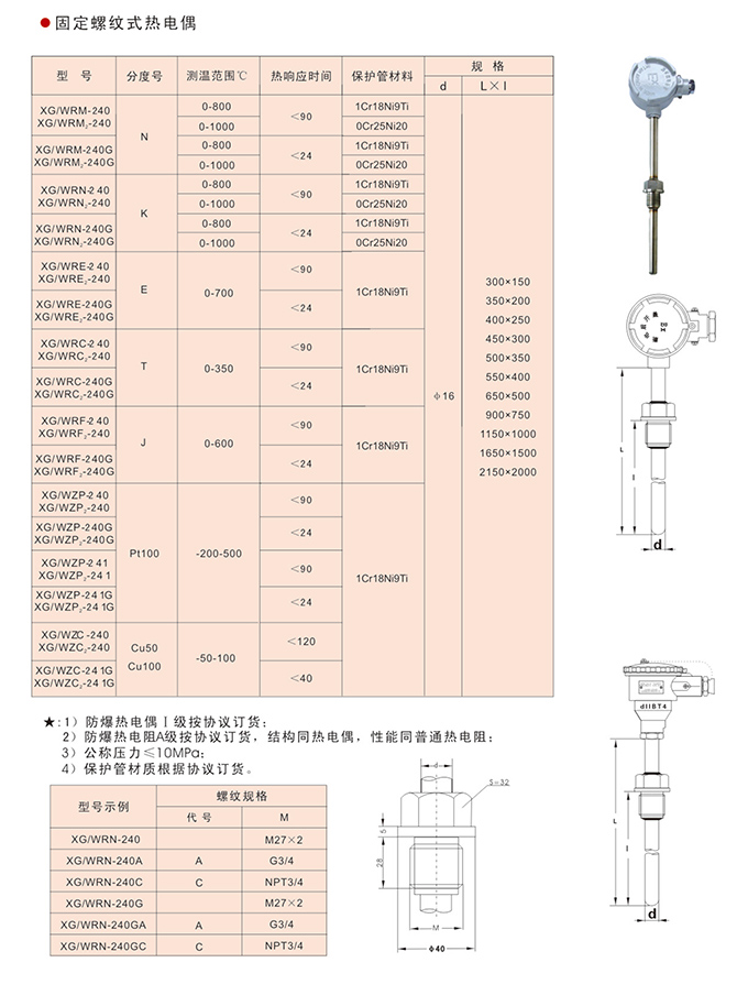 1)防爆熱電偶Ⅰ級按協議訂貨;