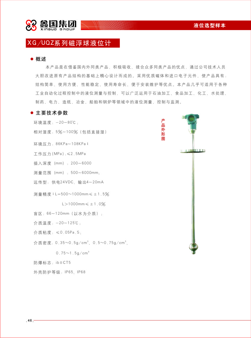 XG / UQZ 系列磁浮球液位計,是在借鑒國內(nèi)外用產(chǎn)品,積極吸收、揉合眾多同類產(chǎn)品的優(yōu)點,通過公司技術人員大膽改進原有產(chǎn)品結構的基礎上精心設計而成的。采用優(yōu)質(zhì)磁體和進口電子元件,使產(chǎn)品具有結構簡單
